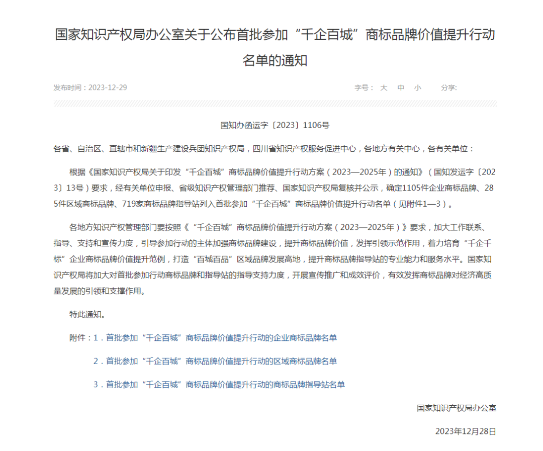 “千企百城”商標品牌價值提升行動是國家深入貫徹“知識產權強國”“品牌強國”的重要活動,旨在推動全國范圍內的企業加強商標品牌建設,商標品牌價值提升,加快推動中國產品向中國品牌轉變,促進經濟高質量發展。